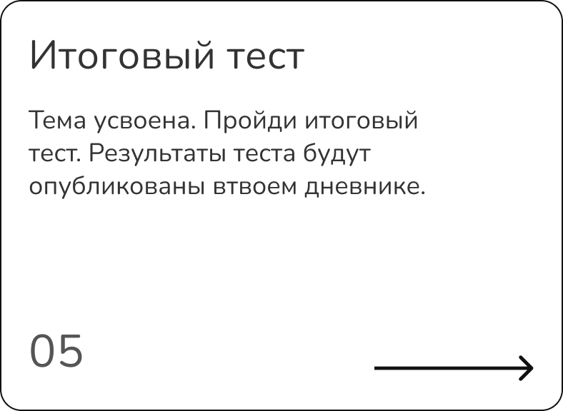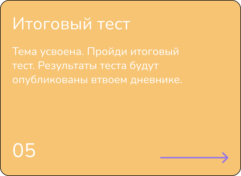 Тема усвоена. Пройди итоговый тест. Результаты теста будут опубликованы втвоем дневнике.