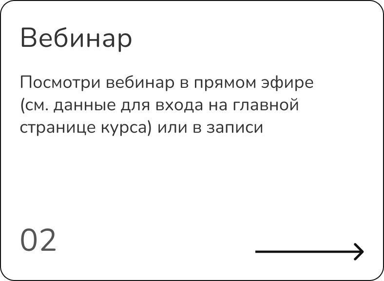 Посмотри вебинар в прямом эфире (см. данные для входа на главной странице курса) или в записи